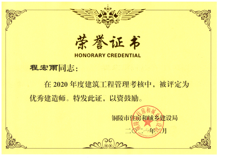 銅陵市2020年度優(yōu)秀建造師(程宏雨)